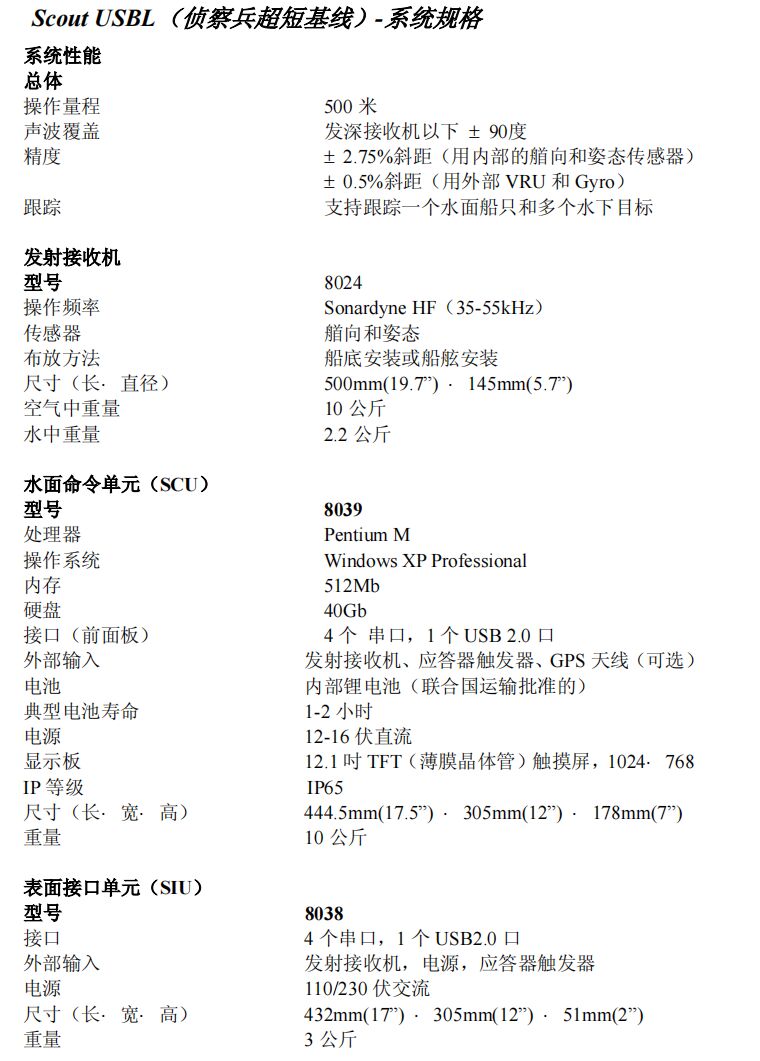 Sonardyne水下定位、导航和控制系统,Scout USBL 是一个完全基于船体的水下跟踪系统,用于商业潜水,ROV 和拖鱼。紧凑、轻便、易于船上安装。Scout 的设计适用于具有很少一点或根本没有声学定位经验的用户,和那些刚到现场就想立即通电开始跟踪目标的用户。